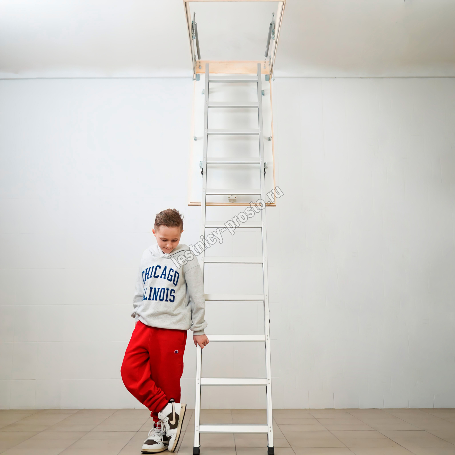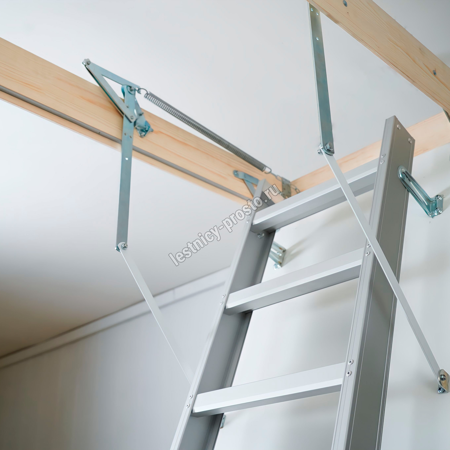 Лестница чердачная складная алюминиевая 3-х секционная. Ступени полностью выполнены из алюминия.