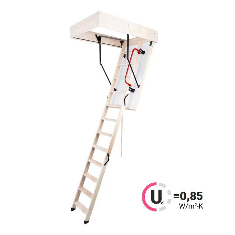 Модель EXTRA идеальна для условий, когда чердак плохо утеплен и требует дополнительной теплоизоляции. По контуру короба одинарный уплотнитель. Лестница имеет нескользящие ножки, которые идеально прилегают к земле, предотвращают появление царапин на поверхности пола и придают эстетичный вид после ее резки. 4-х секционная складная чердачная лестница. Высота потолка до 3350 мм.