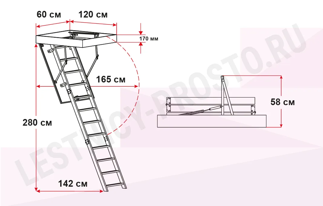 Чердачная лестница OMAN MAXI EI45 60×120 см, h-280 см