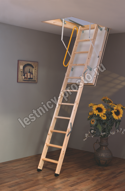 Складная деревянная лестница  из 3-х секций с утепленным изолированным люком идеально подходит для крайне холодных чердачных помещений.