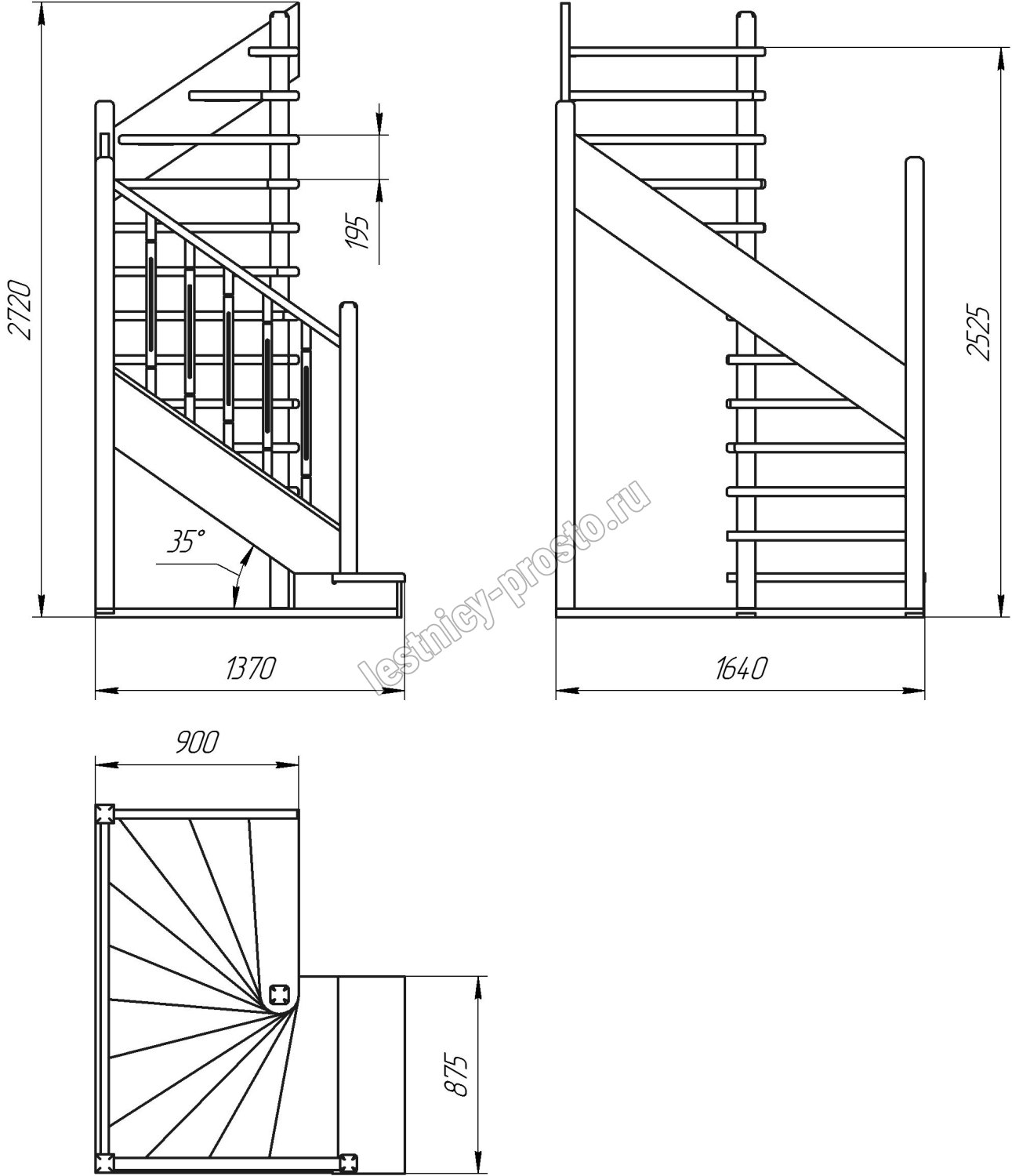 Высота лестницы 2525 - 2720 мм