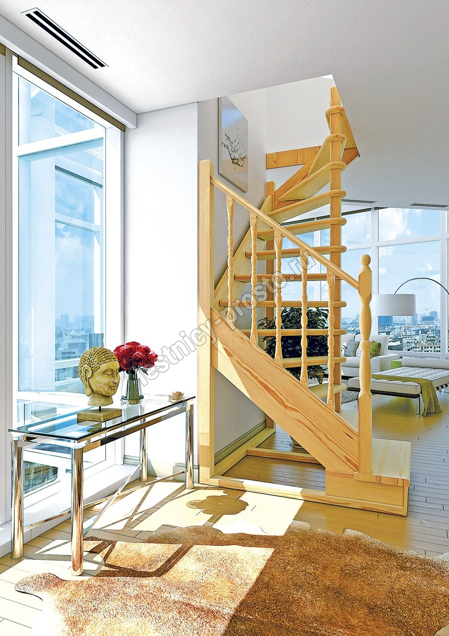 Деревянная межэтажная лестница ЛЕС-03 2525-2720 проем 1640-900, Сосна