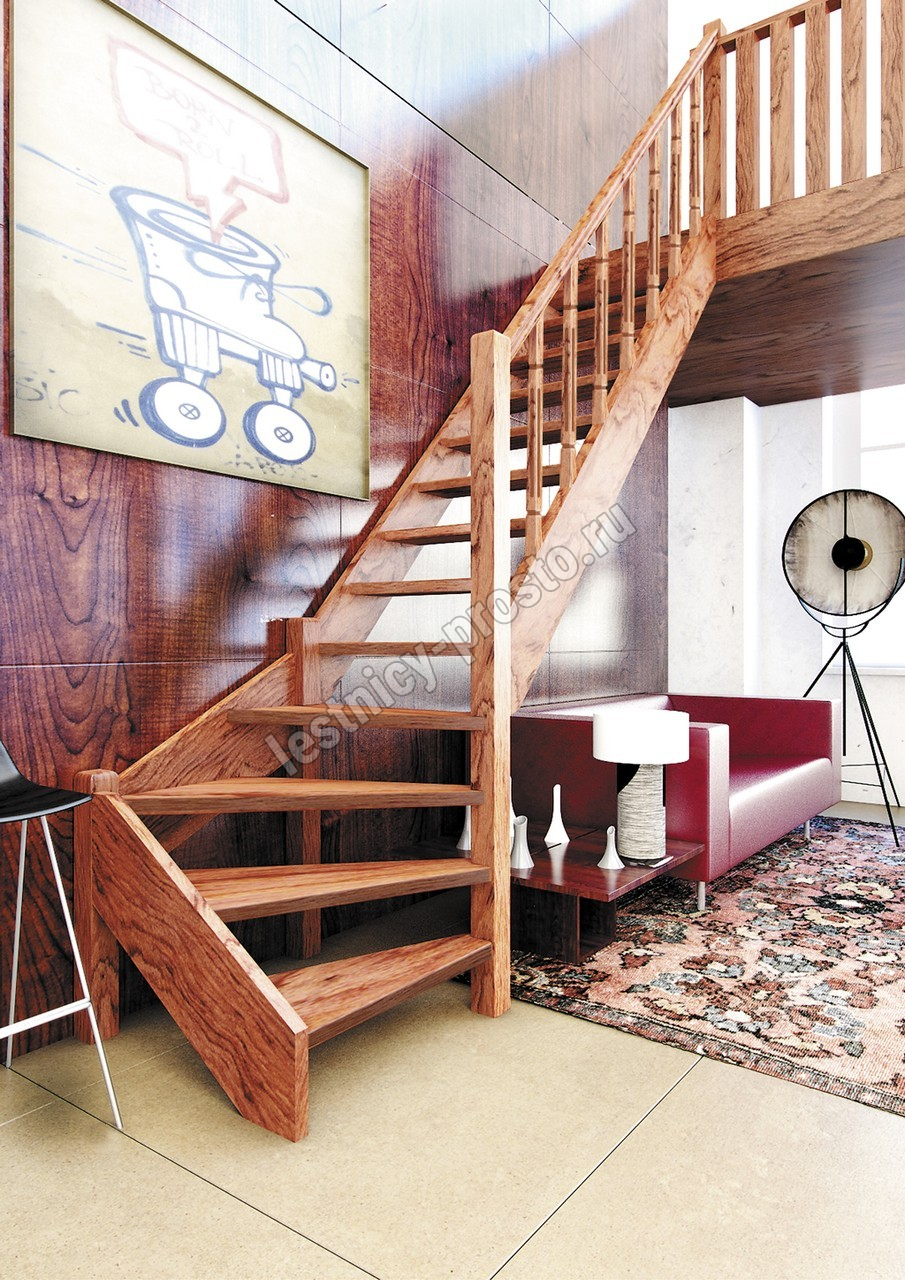 Деревянная межэтажная лестница ЛЕС-07 3085-3290 проем 2930-830, Бук