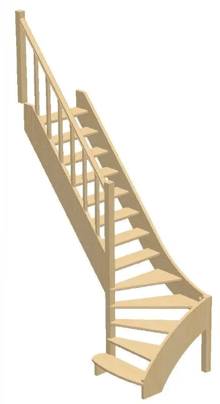 Удобная лестница на косоурах с поворотом на 90 градусов. Открытые ступени визуально облегчают конструкцию. Ограждения по всему маршу обеспечивают дополнительную безопасность и возможность декорирования. Монтаж осуществляется силами двух человек на объекте по указаниям, приведенным в паспорте на лестницу.