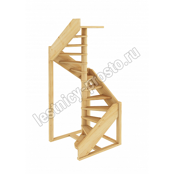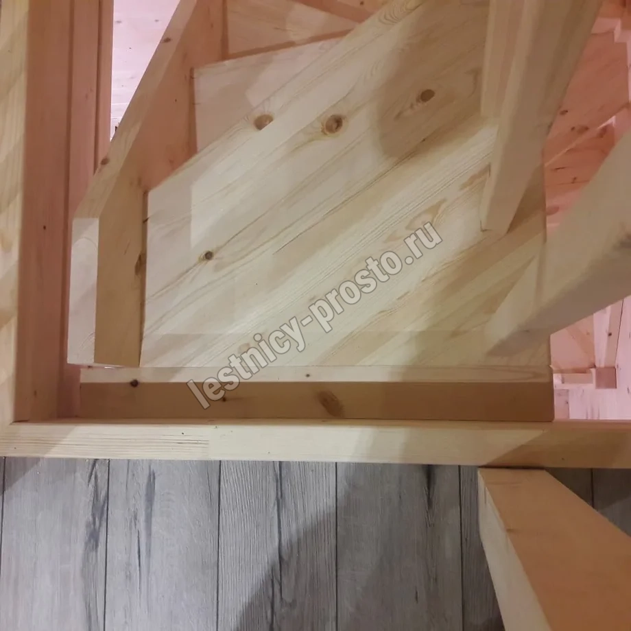 Небольшая аккуратная лестница, хорошо подойдет для помещения с небольшим проемом, поможет сэкономить пространство и организовать комфортный подъем на  уровень выше. Возможны варианты лестницы из сосны под покраску, сосны, дуба, бука или ясеня. Для увеличения срока эксплуатации мы рекомендуем покрыть элементы лестницы защитным средством. Вы можете сделать это самостоятельно или заказать предварительное покрытие необходимым средством (или тонирование) в нашем цеху.