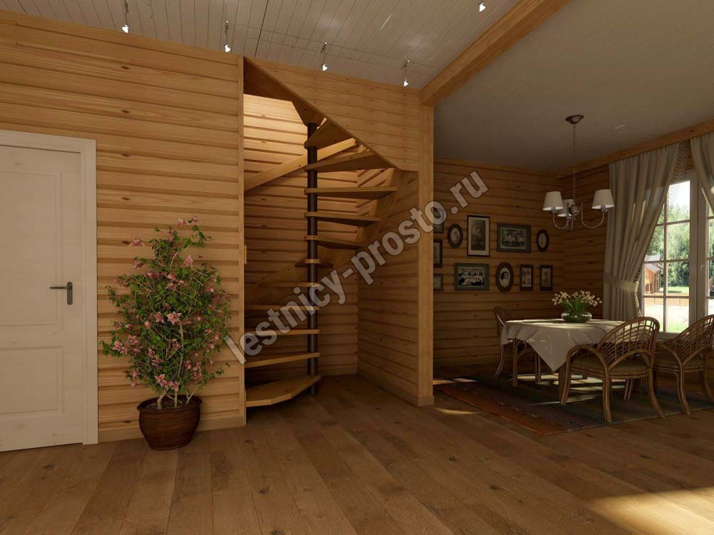 Базовый комплект включает в себя деревянные элементы лестницы без какого-либо покрытия.