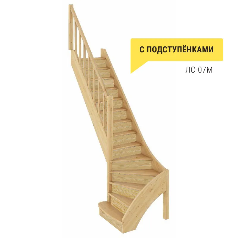 Удобная и современная модель с забежными ступенями будет отличным решением для помещений, где необходимо сэкономить свободное пространство. Сдержанный классический дизайн великолепно впишется в интерьер любого стиля и создаст уютную домашнюю атмосферу. Лестница имеет поворот на 90 градусов и выпускается в 4 различных вариантах, что существенно упрощает ее подбор.