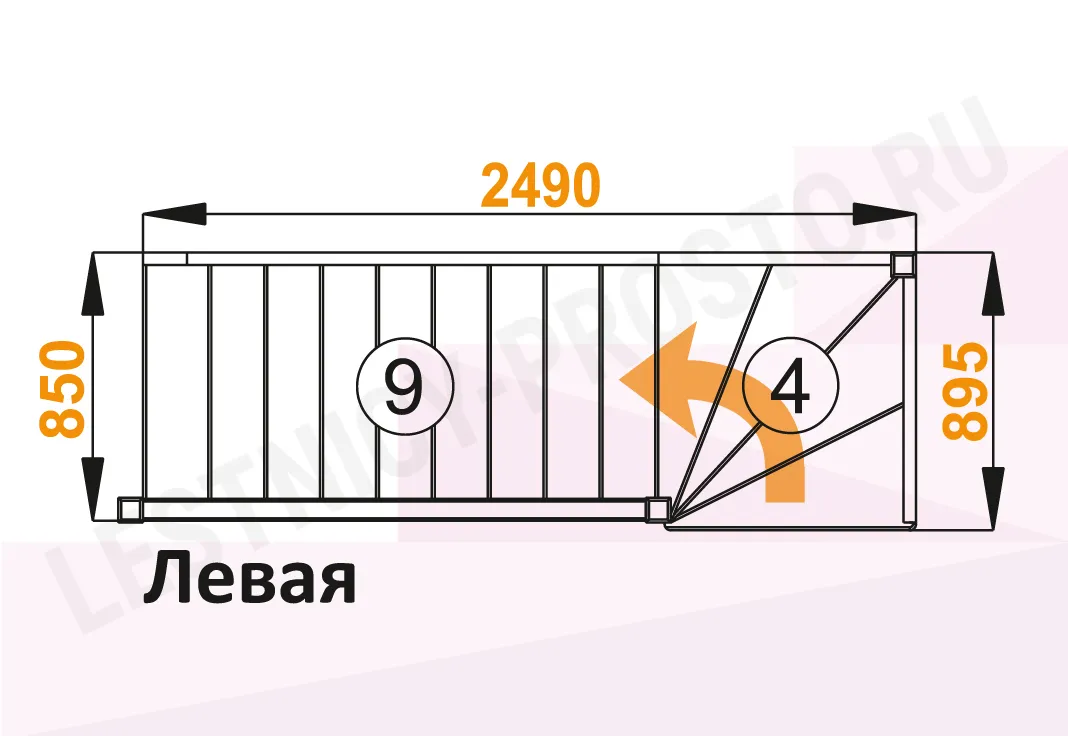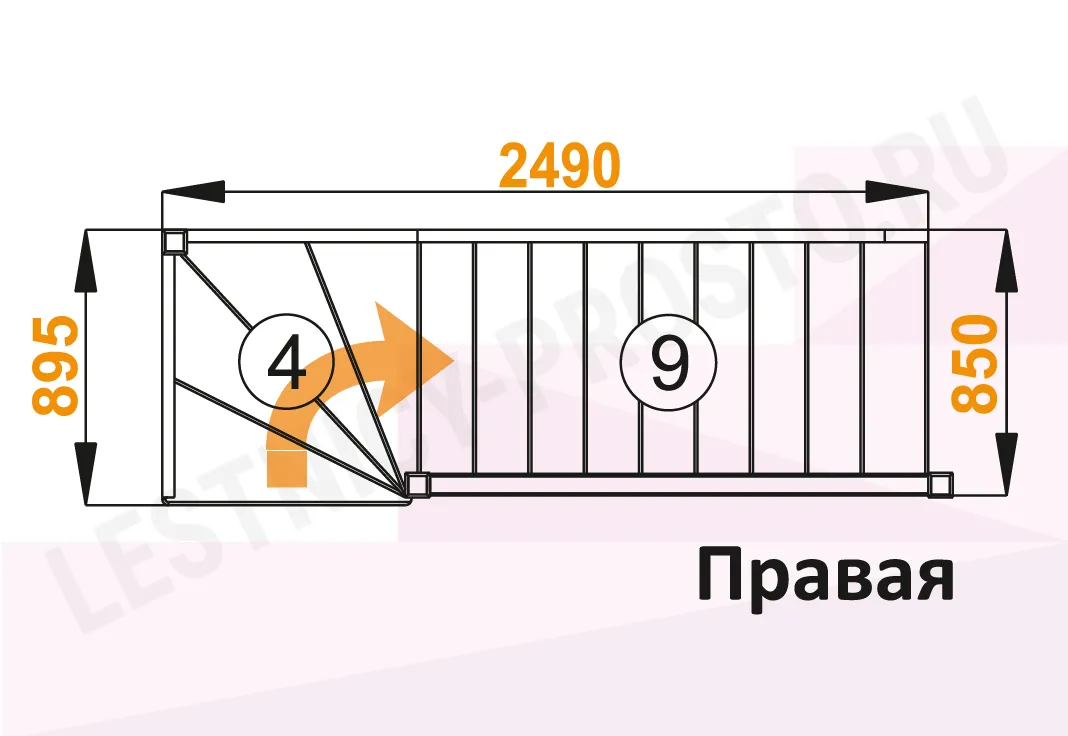 Габариты в плане 2490 х 895 мм