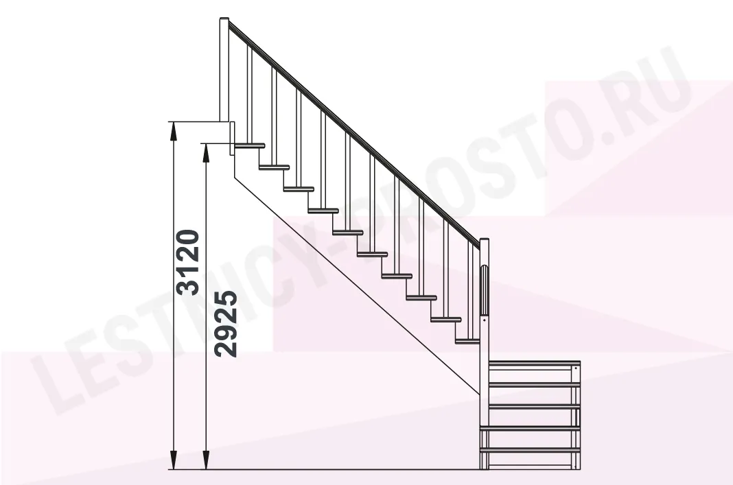 Базовый комплект включает в себя деревянные элементы лестницы и ограждения без какого-либо покрытия.