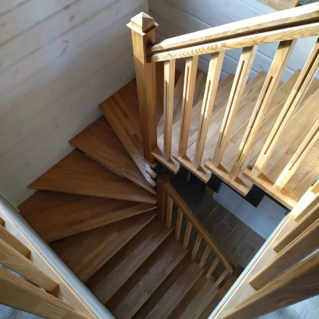 Ступени и поручень лестницы изготовлены из ясень, остальные элементы из сосны.