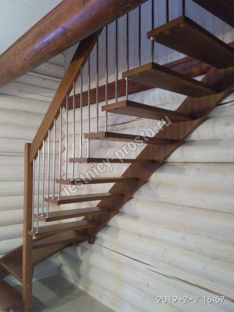 возможна комбинированная лестница: из сосны (ступени бук, ясень, дуб);