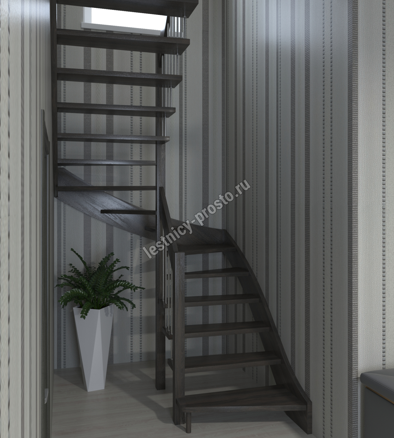 Лестница Prosto Console п-образная забежная, сосна h280 см