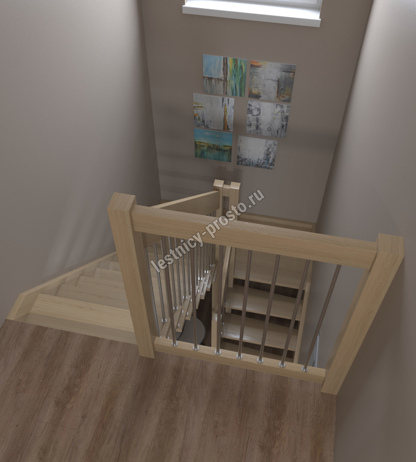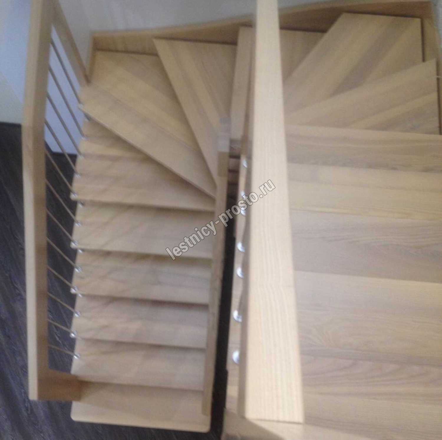 возможна комбинированная лестница: из сосны (ступени бук, ясень, дуб);