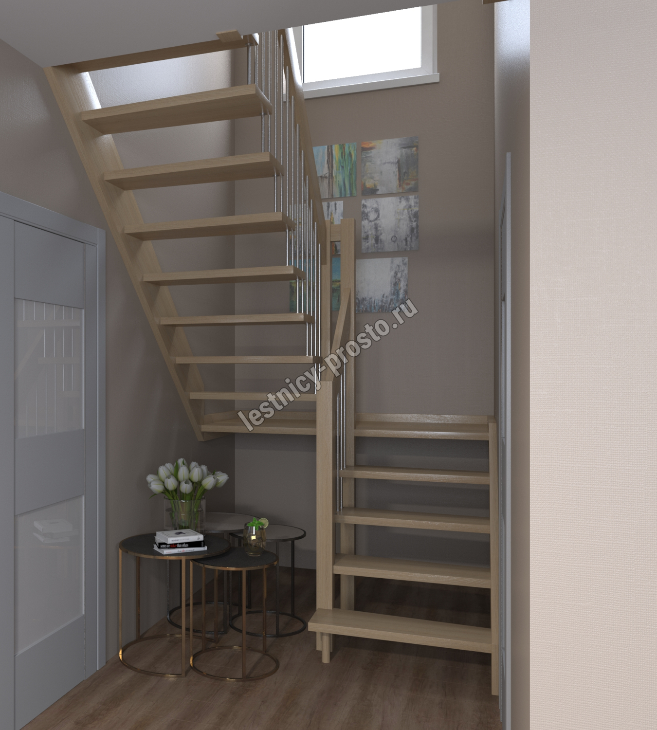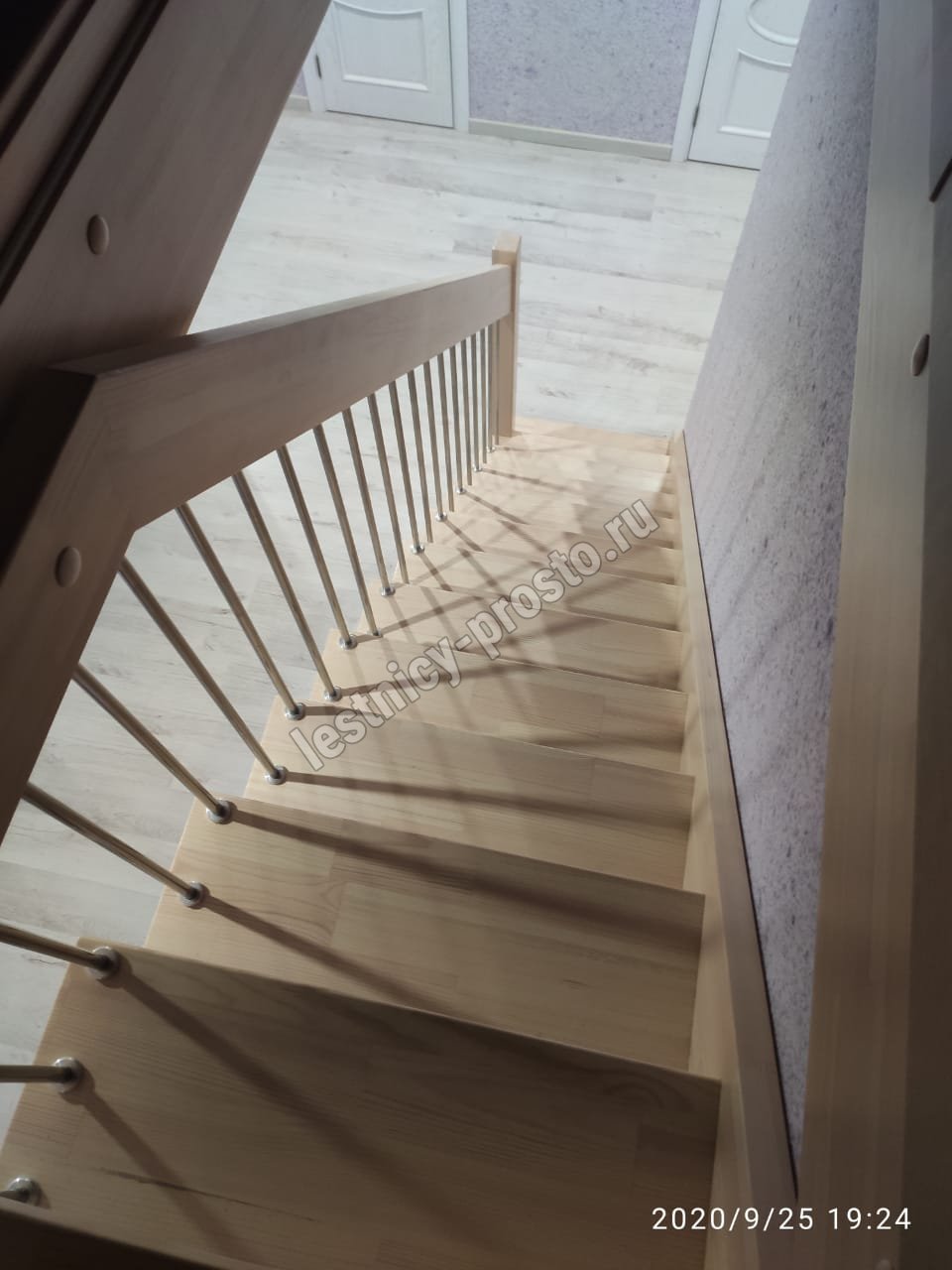 Элегантная современная лестница из сосны.