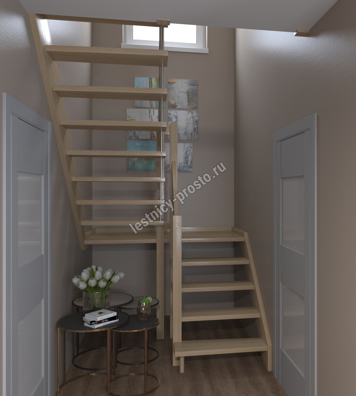 Лестница Prosto Console п-образная забежная, сосна h300 см