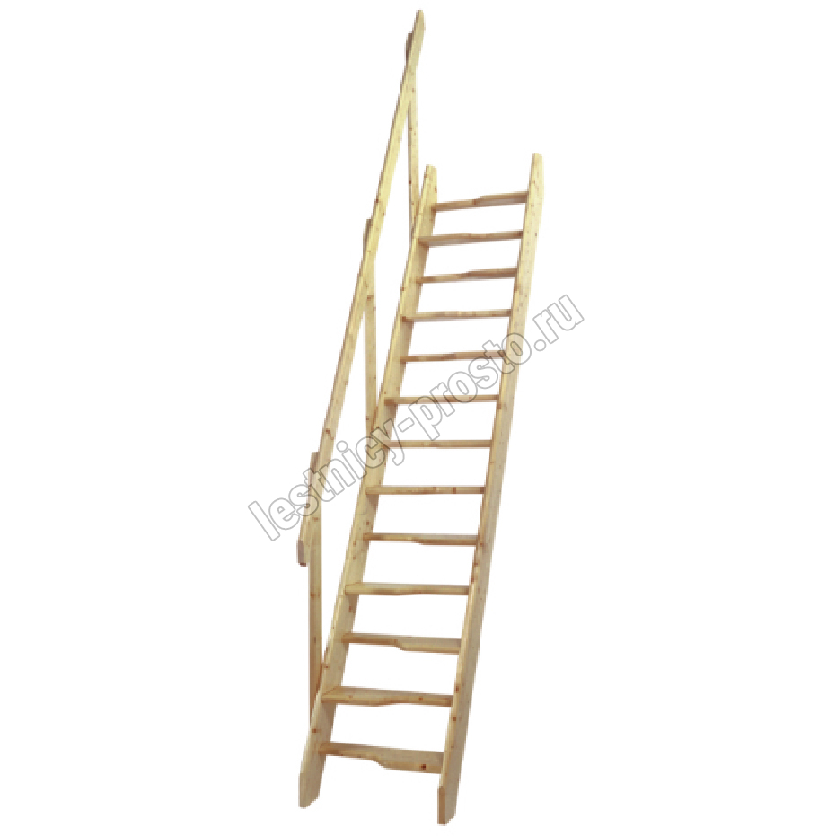 Мансардная лестница из ели М-011у с поручнем