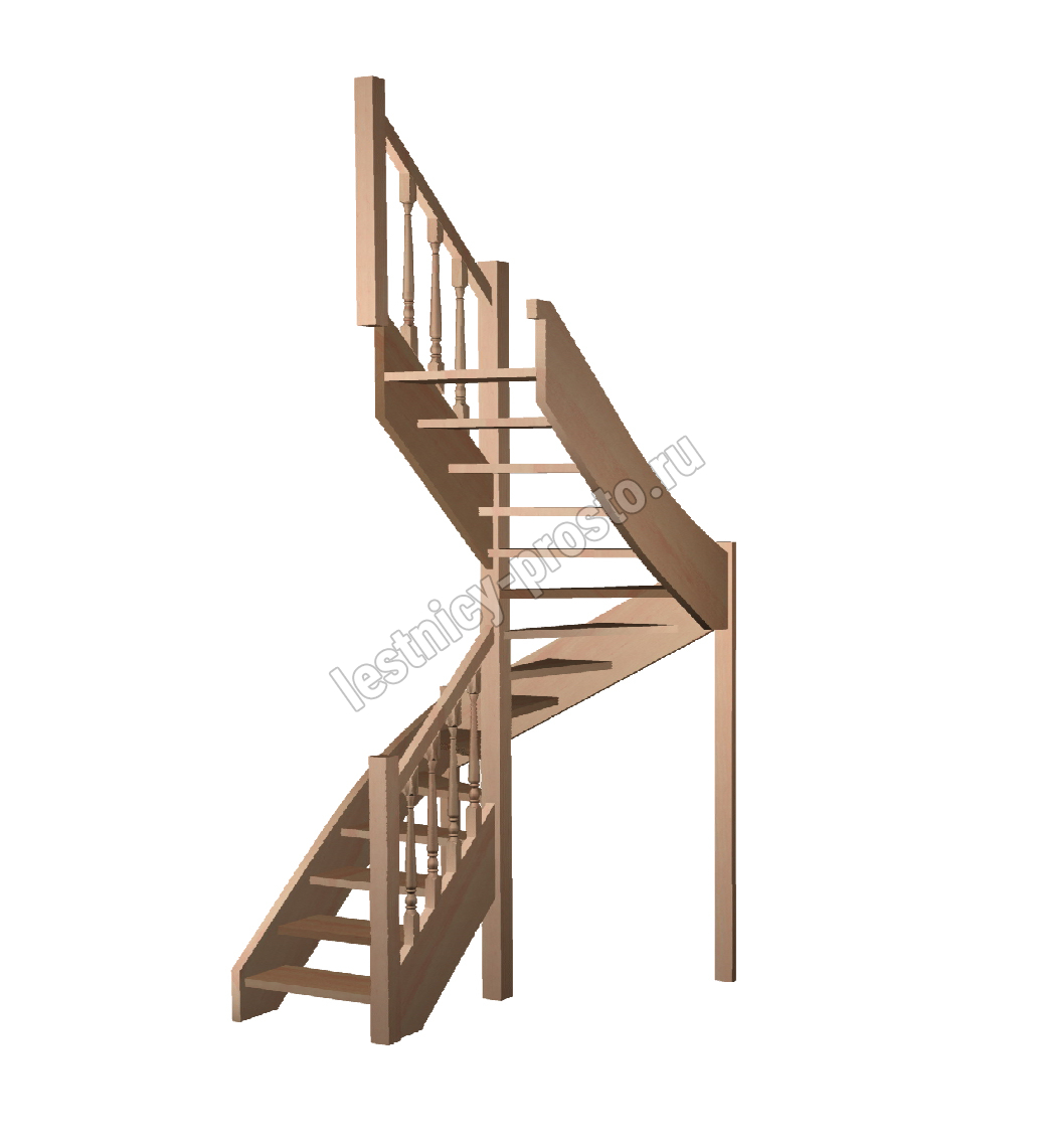 Базовый комплект включает в себя деревянные элементы лестницы и ограждения без какого-либо покрытия. В стандартной комплектации лестницы поставляются с квадратными столбами и точеными балясинами, при желании, можно заменить вид ограждений на любые другие из нашего каталога (оплачивается и оговаривается отдельно). Под заказ возможно изготовление данной лестницы с другими размерами, подходящими вашему помещению.