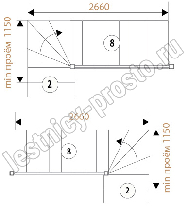Базовое ограждение можно заменить на кованое или точеное. Ступени можно дополнить подступенями, бортиками, миниподступенями. Возможна установка лекальной (пригласительной) ступени. У лестницы комфортная высота шага, удобный широкий марш и угол подъема.