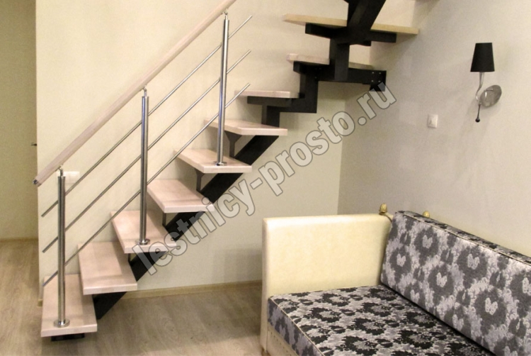 Комплект ограждений для Г-образной лестницы PROSTO MONO из 14 ступеней.