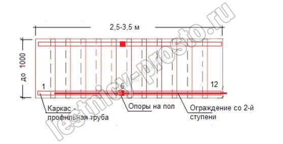Ограждение начинается с пятой ступени.<br>