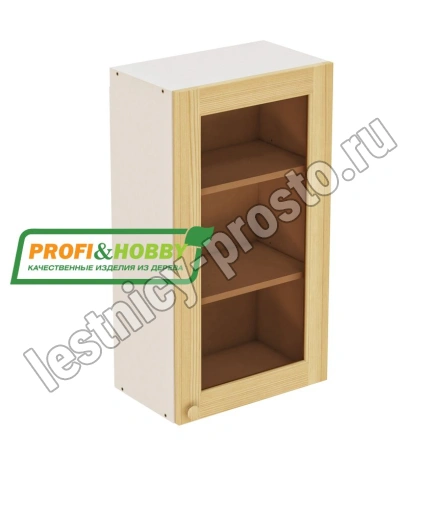 Шкаф навесной 500х340х960 + фасад сосна под стекло бесцветный акриловый лак