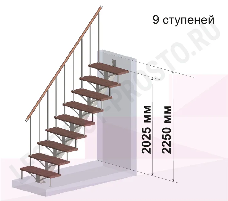 Лестница PROSTO MONO прямая, h225 см, ступени бук