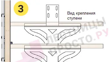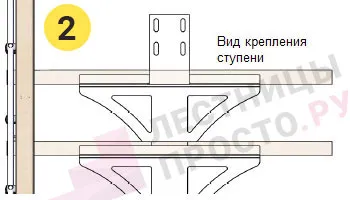 При заказе вы можете выбрать любой вид крепления ступеней из показанных ниже в блоке "Чертежи и схемы" (просто оформите заказ, мы позвоним вам для согласования заказа и спросим номер необходимого крепления).