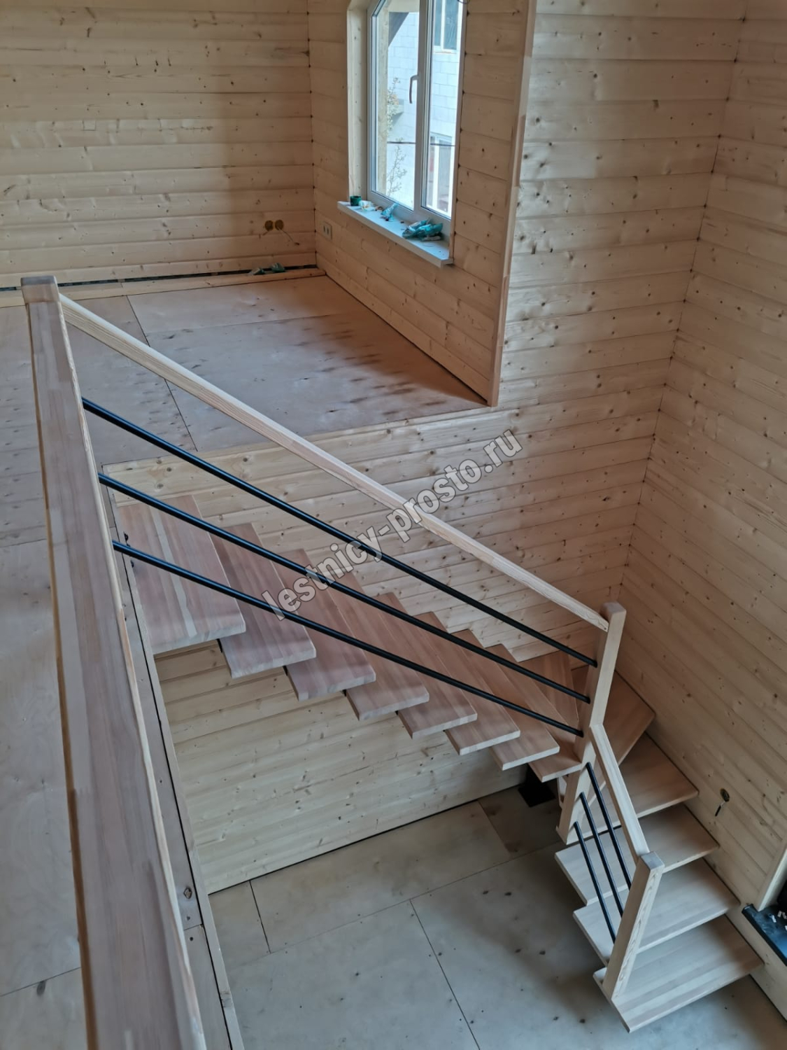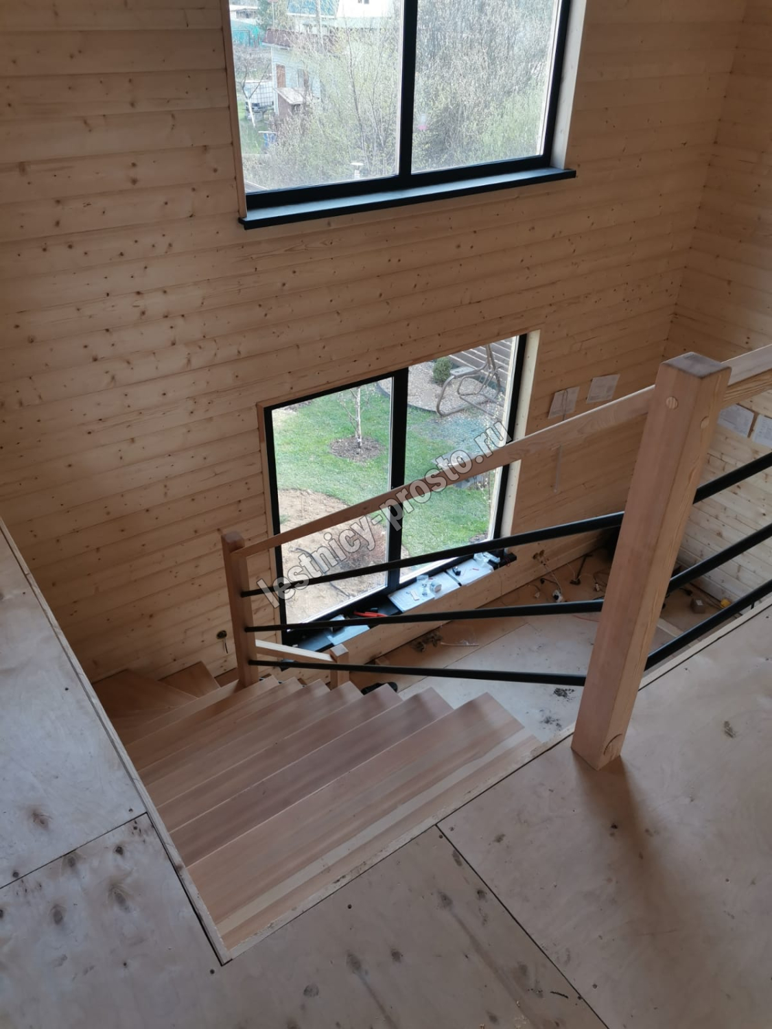 Лестница PROSTO MONO STEP TRINITY г-образная забежная, ступени бук