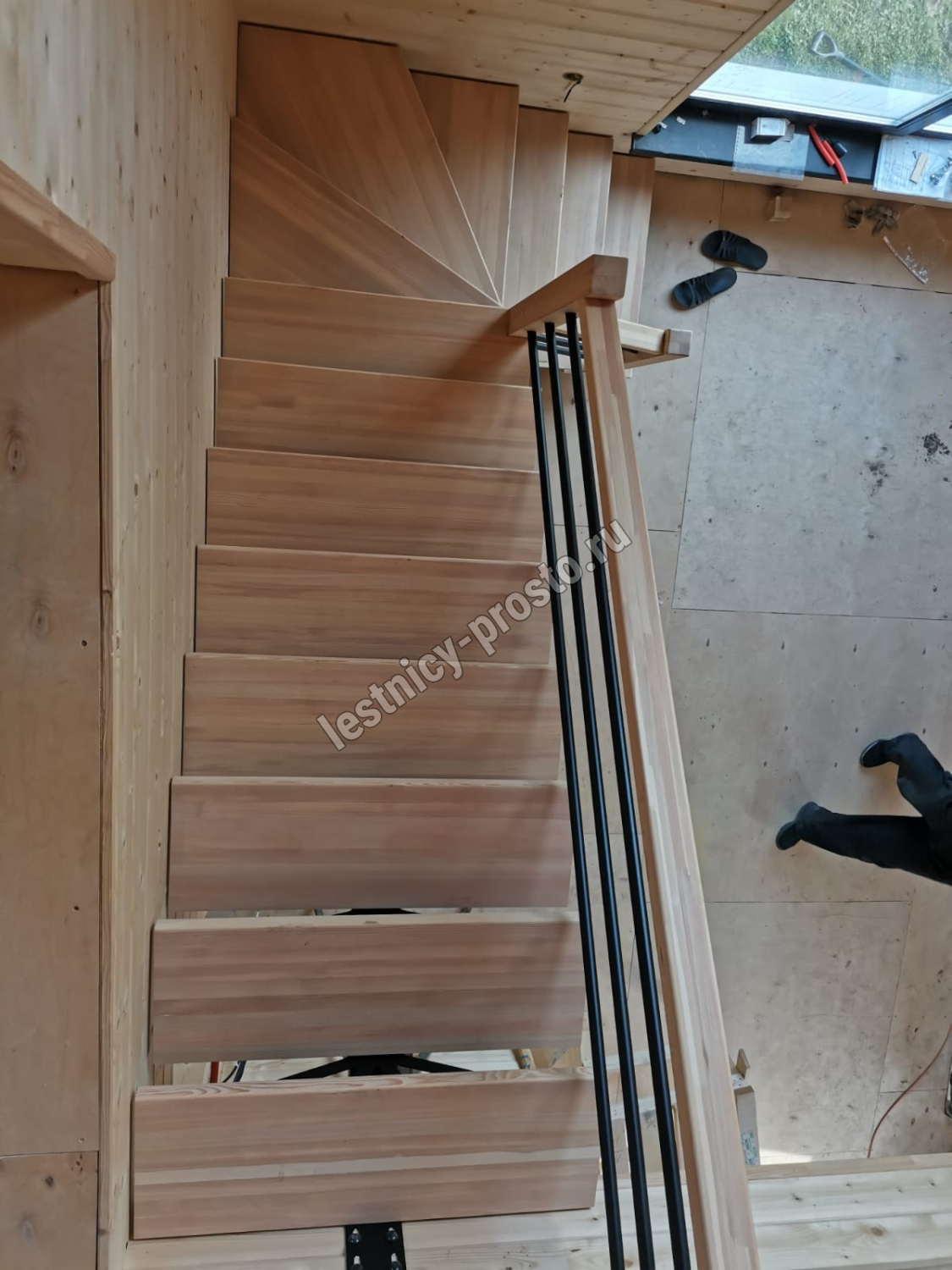 Поворот на 90° реализован посредством поворотных ступеней, высота поворота определяется параметрами вашего помещения и размерами проёма.