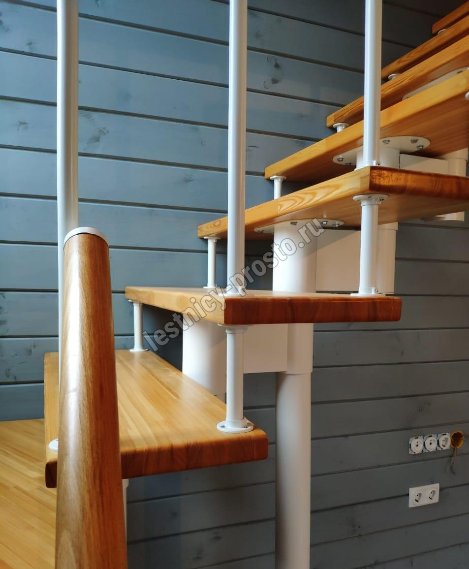 Поставляется в разобранном виде. Лестницу не сложно собрать и установить самостоятельно, при наличии базовых навыков работы с необходимыми инструментами. Если хотите сэкономить время и силы - вы можете заказать монтаж лестницы нашими специалистами.Упаковка: