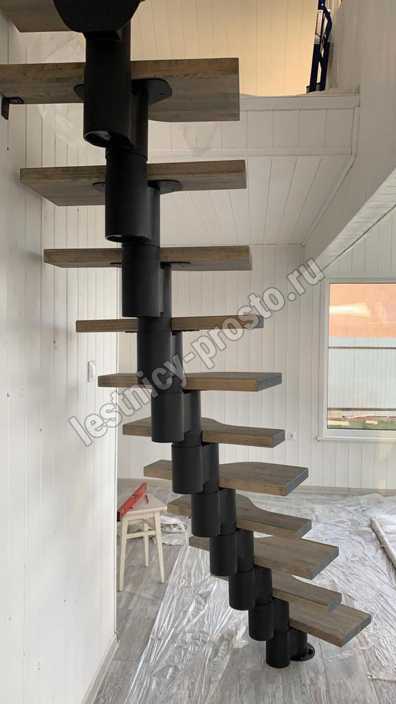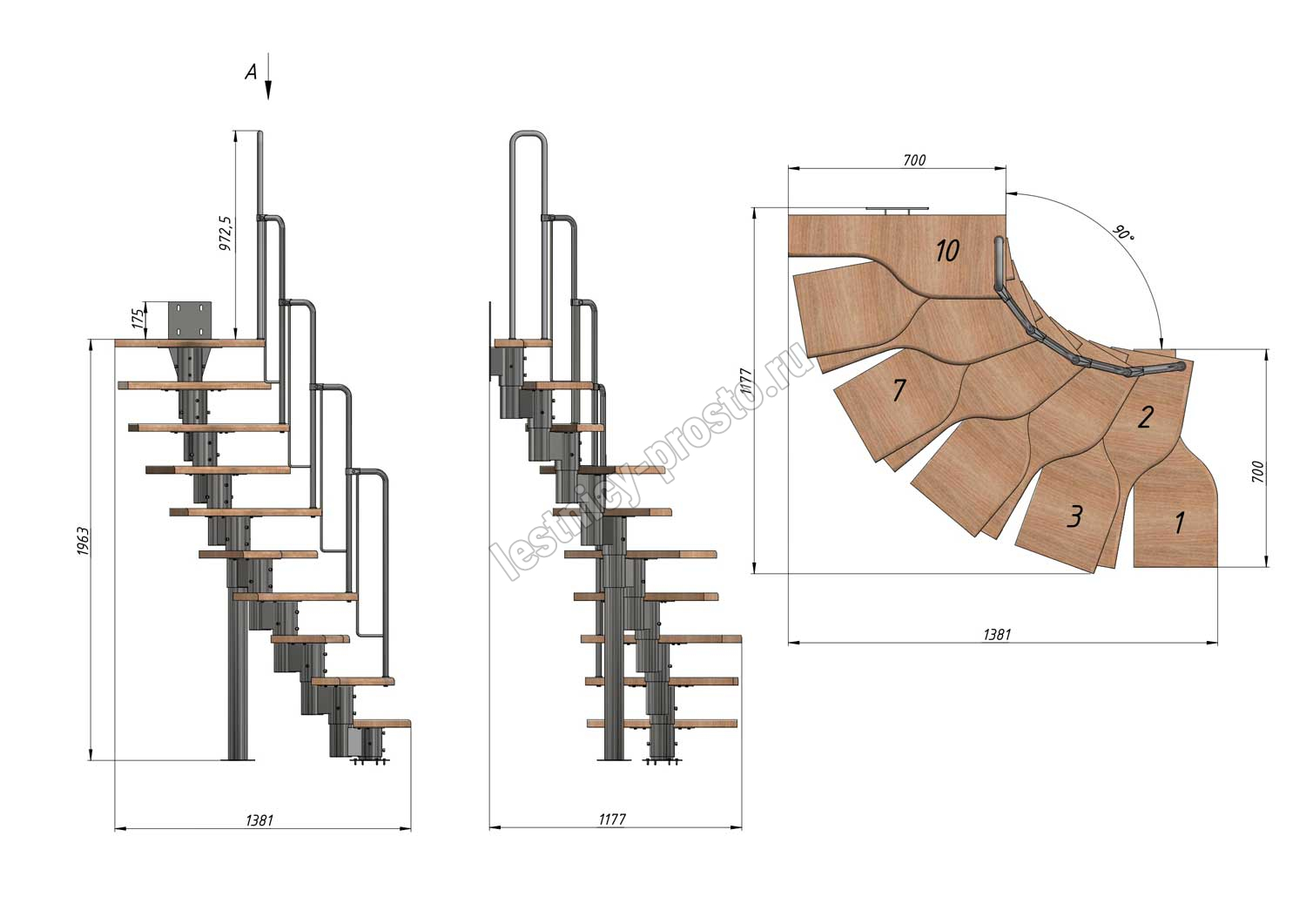 Лестница Prosto Urban Black гусиный шаг 700 мм, h180-264 см (10 ступеней) берёза мультиплекс