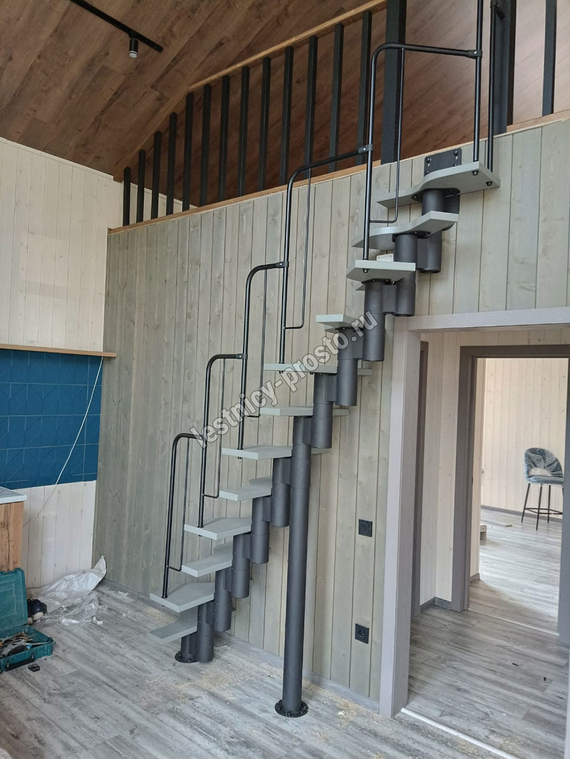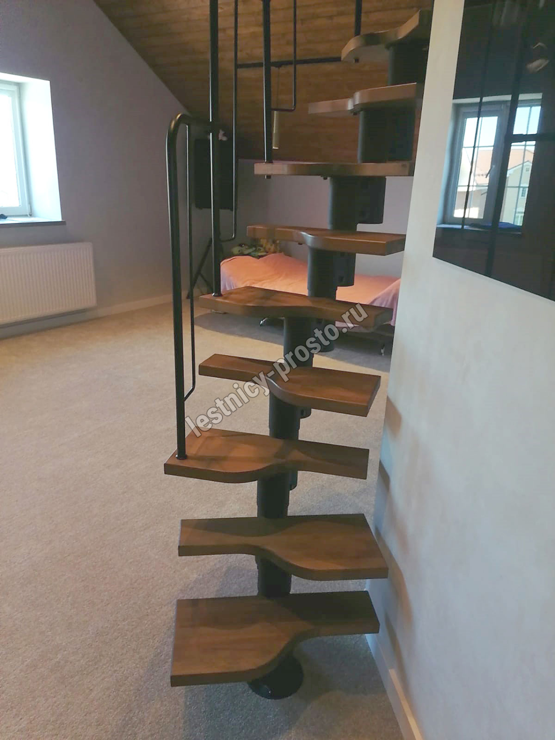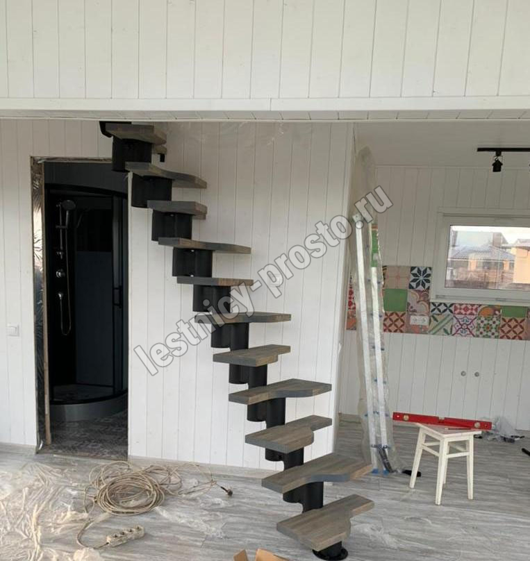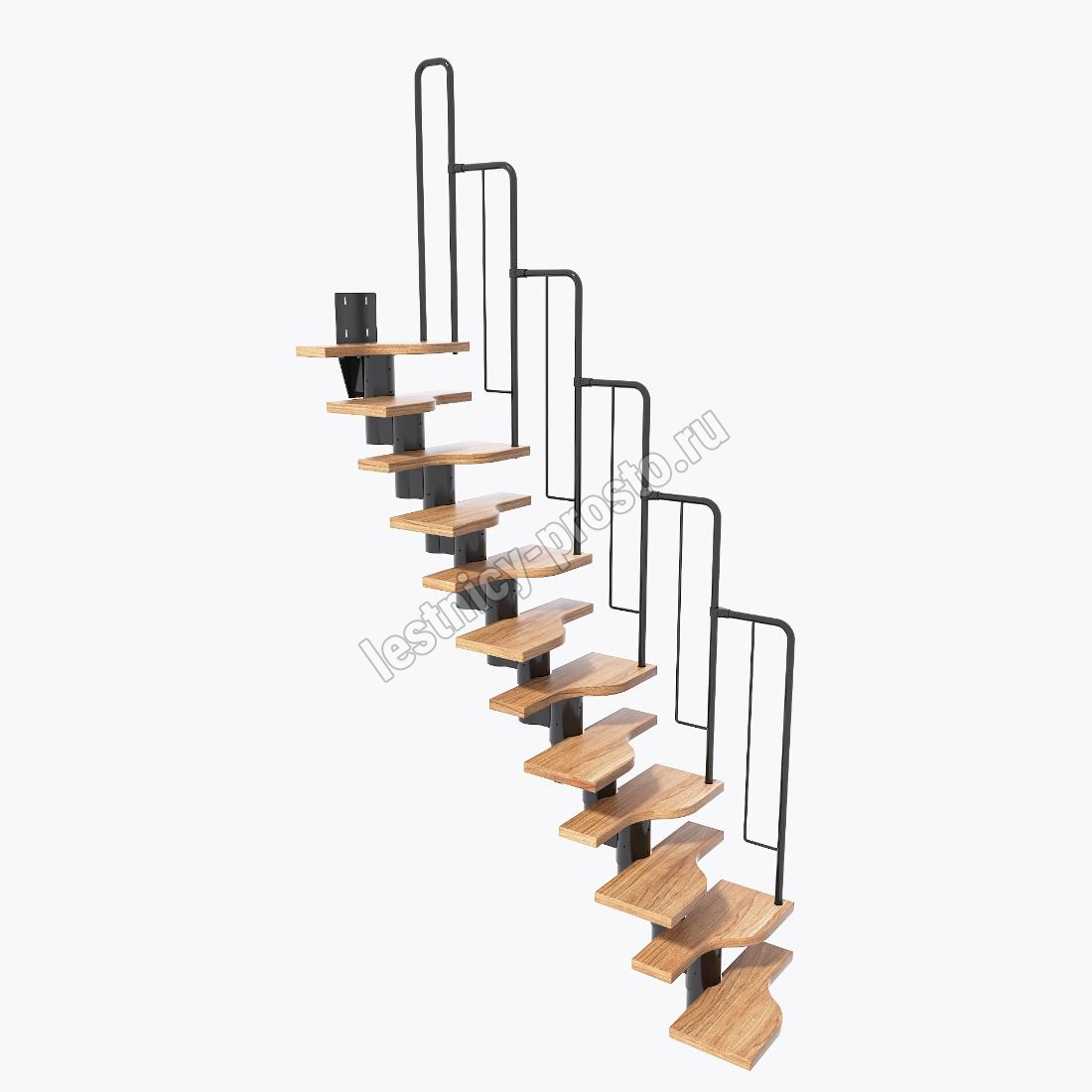 Лестница Prosto Urban Black гусиный шаг 700 мм, h198-288 см (11 ступеней), дуб