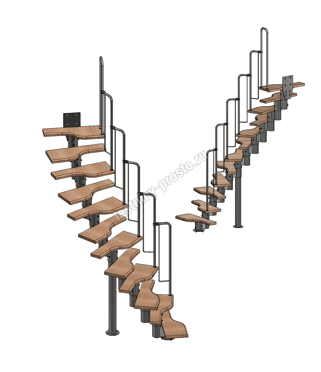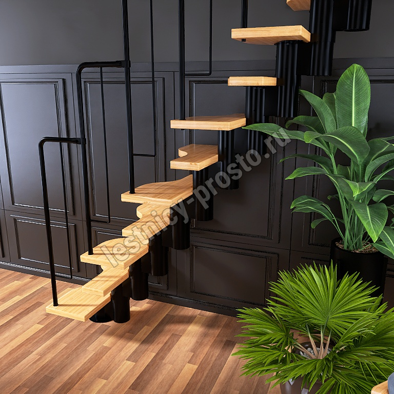 Лестница Prosto Urban Black гусиный шаг 700 мм, h216-312 см (12 ступеней), берёза мультиплекс
