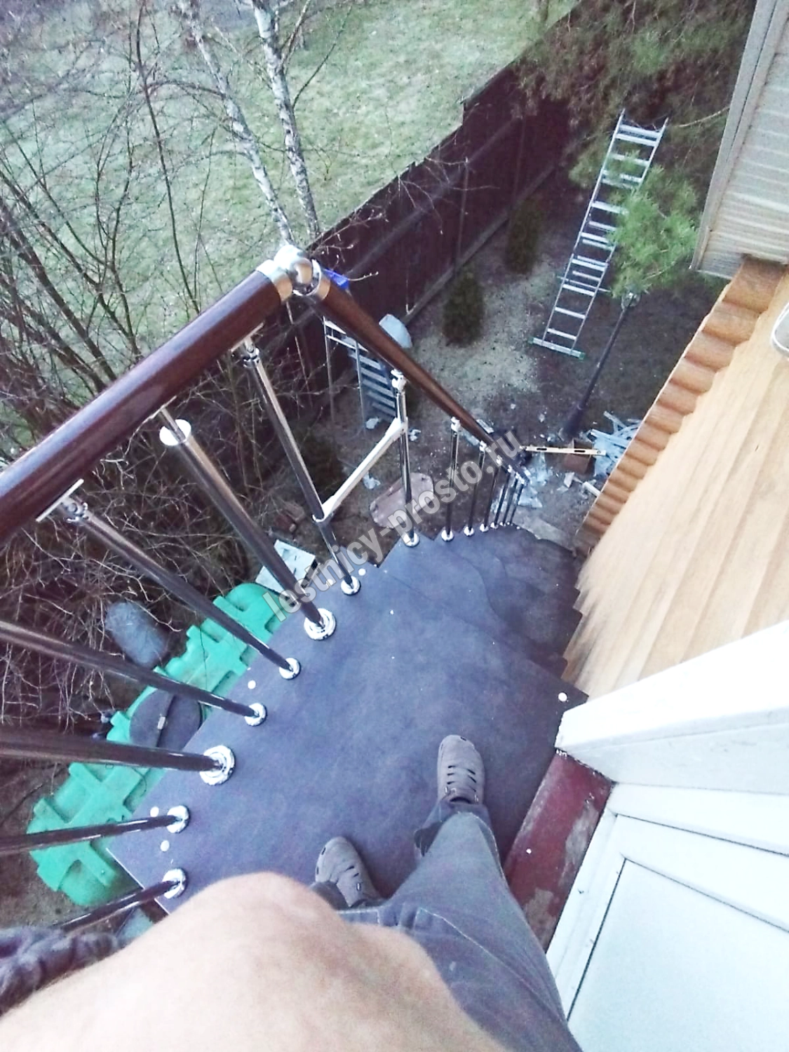 соответствует картинке, но вы не ограничены в его выборе. Лестницу можно приобрести и без ограждения, и с любым другим. Устанавливать на такую лестницу можно почти всё, начиная от классических деревянных балясин и заканчивая эксклюзивными коваными изделиями.