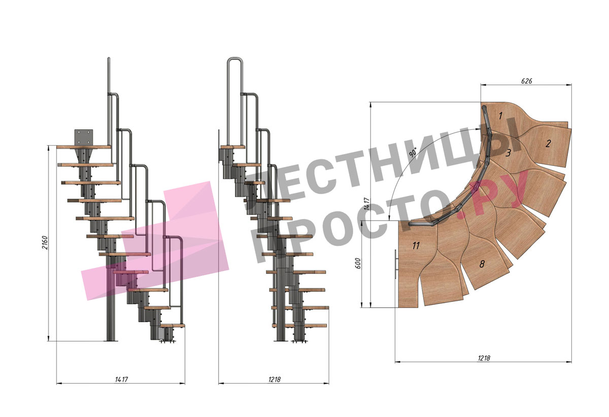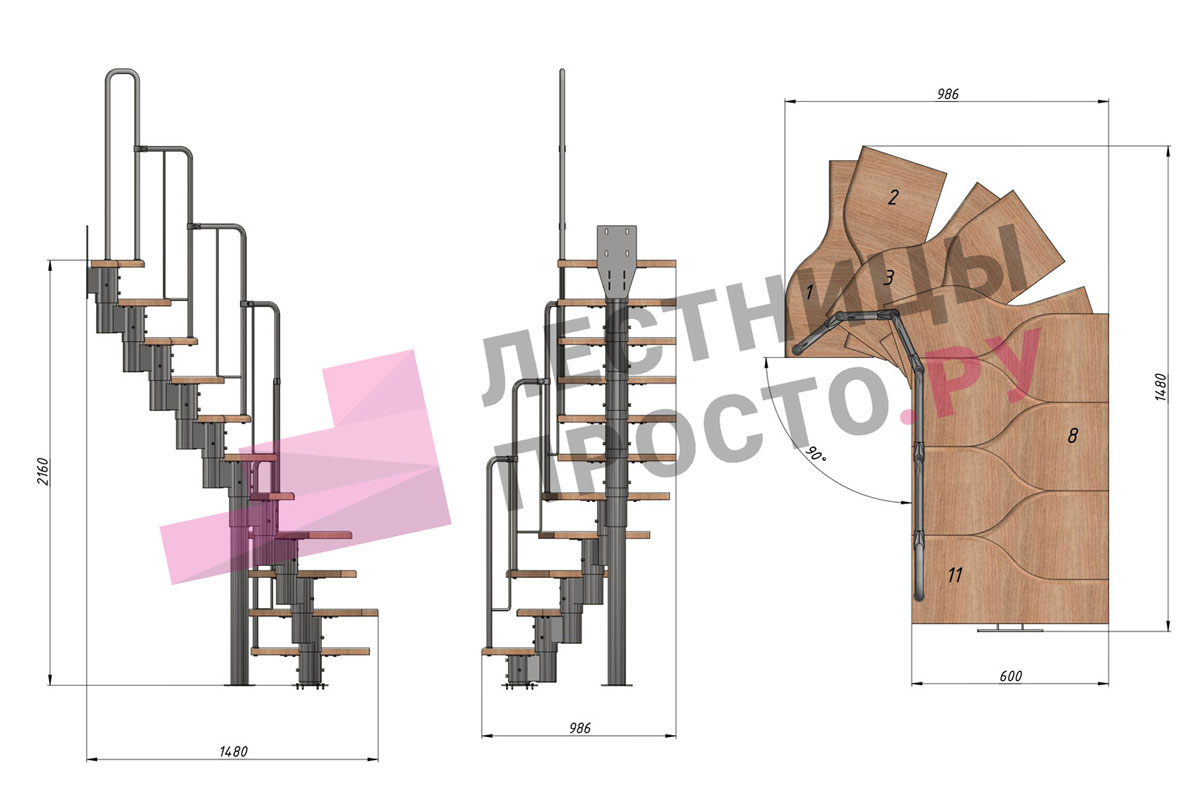 Высота лестницы 1980 - 2880 (11 ступеней) мм