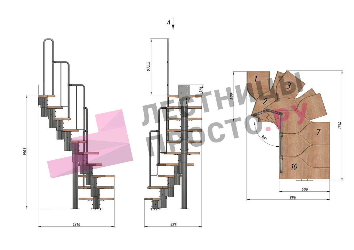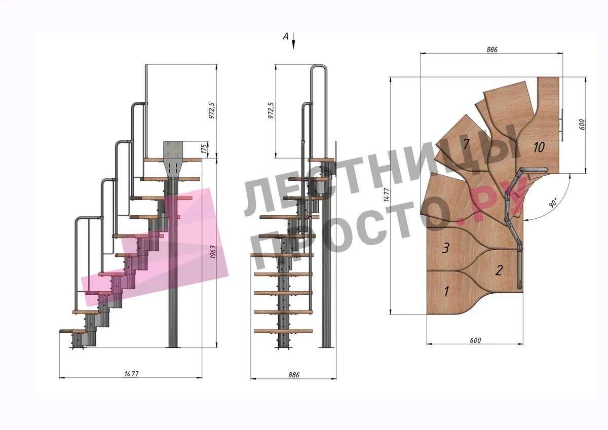 -Возможность установить лестницу как прямую, так и с поворотом внизу или вверху; при этом нужно понимать, что поворот менее удобен, чем прямой участок лестницы.