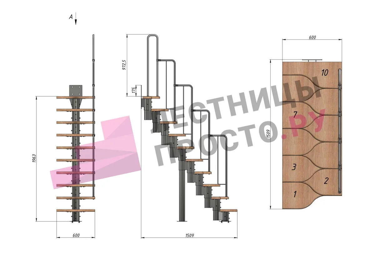 соответствует картинке, но вы не ограничены в его выборе. Лестницу можно приобрести и без ограждения, и с любым другим. Устанавливать на такую лестницу можно почти всё, начиная от классических деревянных балясин и заканчивая эксклюзивными коваными изделиями.