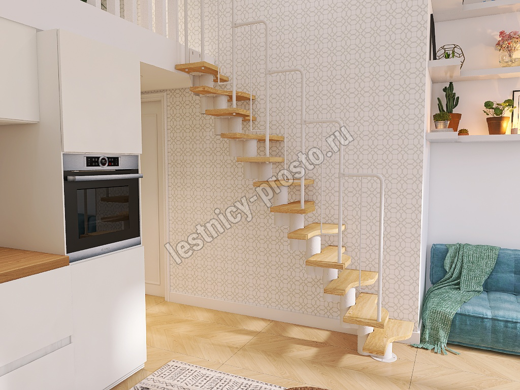 Лестница Prosto Urban White гусиный шаг 700 мм, h198-288 см (11 ступеней), дуб