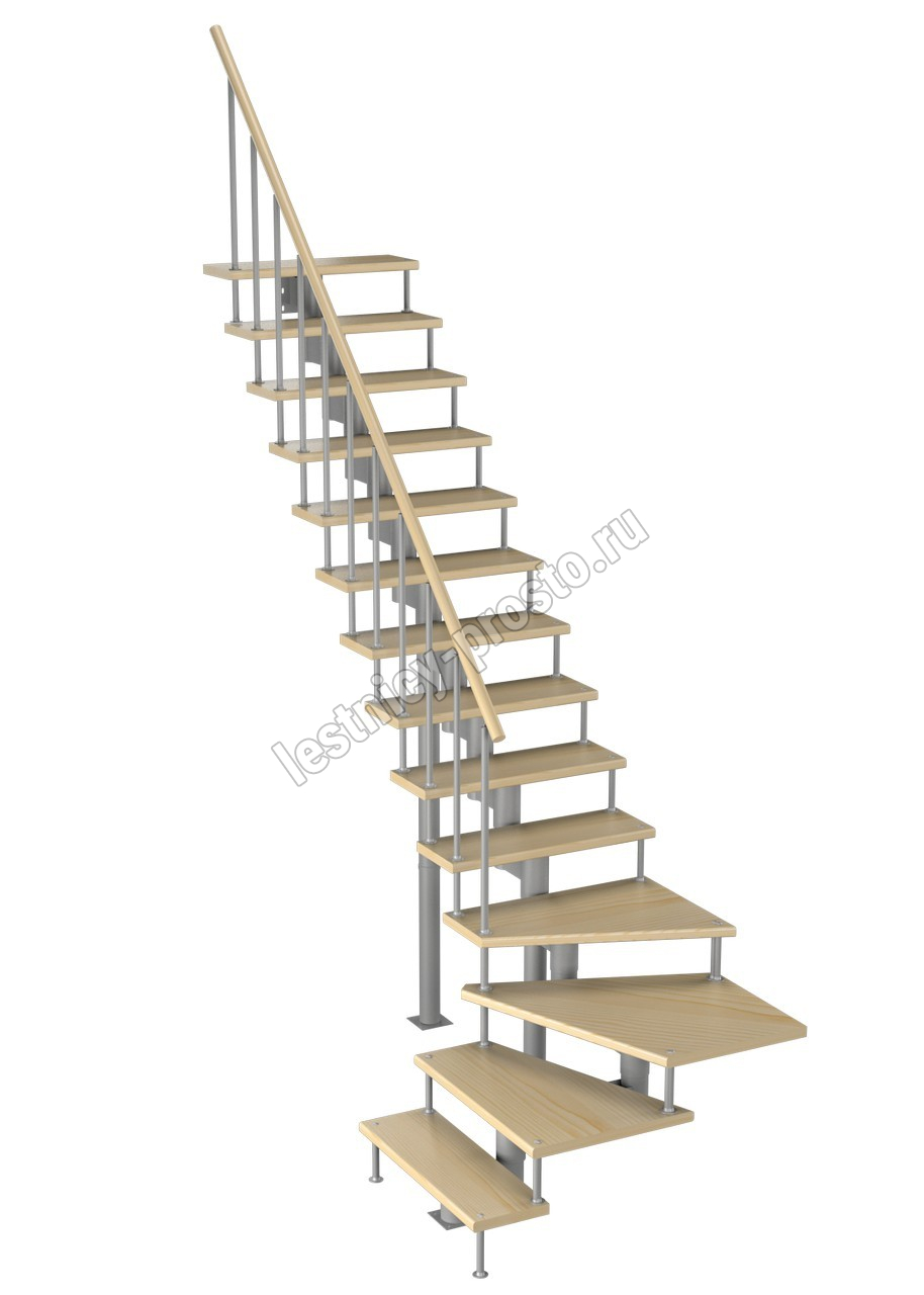 Модульная лестница Фаворит 180 2520-2660, Серый, Сосна, Нержавеющая сталь