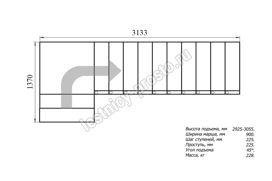 Модульная лестница Статус 225 2925-3055, Белый, Сосна, Крашеная