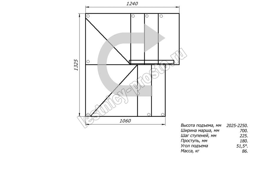 Модульная малогабаритная лестница Эксклюзив 2025-2250, Серый, Сосна, Крашеная