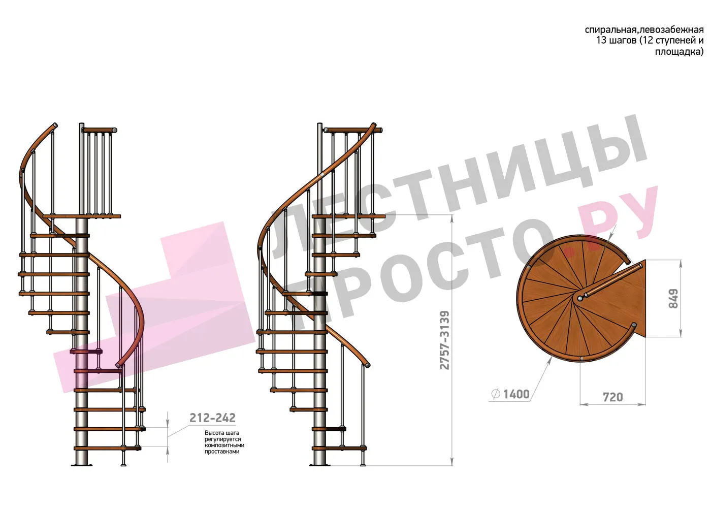 | Винтовая лестница Prosto Spiral White D140см, h254.5-289.8 см |
