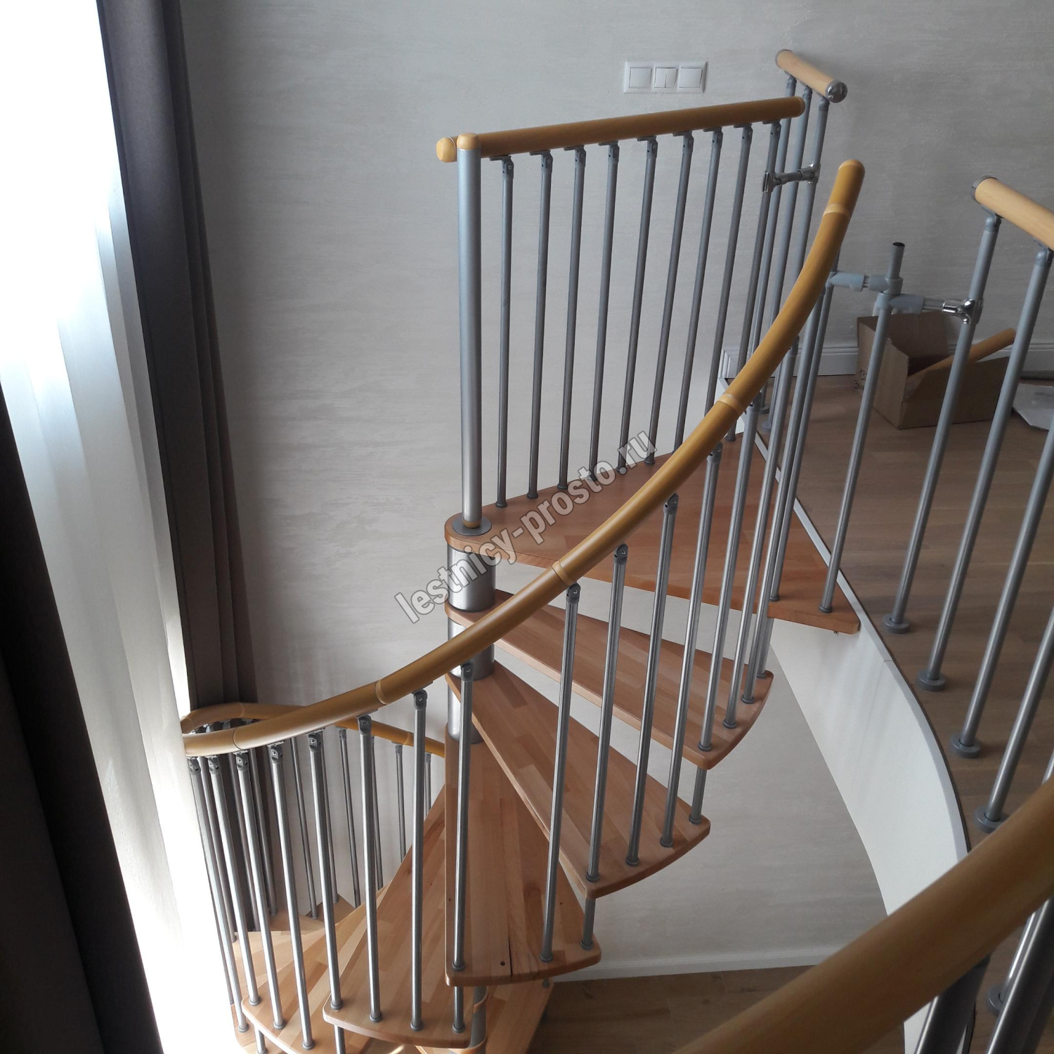 Винтовая лестница SPIRAL WOOD d120 см, серебро, лакированный бук