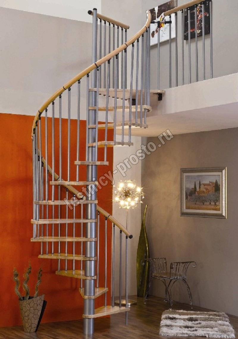 Винтовая лестница SPIRAL WOOD d140 см, серебро, лакированный бук |
