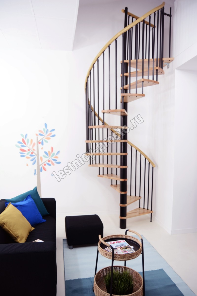 Винтовая лестница SPIRAL WOOD d120 см, черная, лакированный бук |