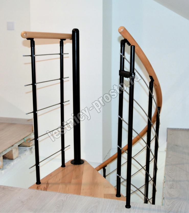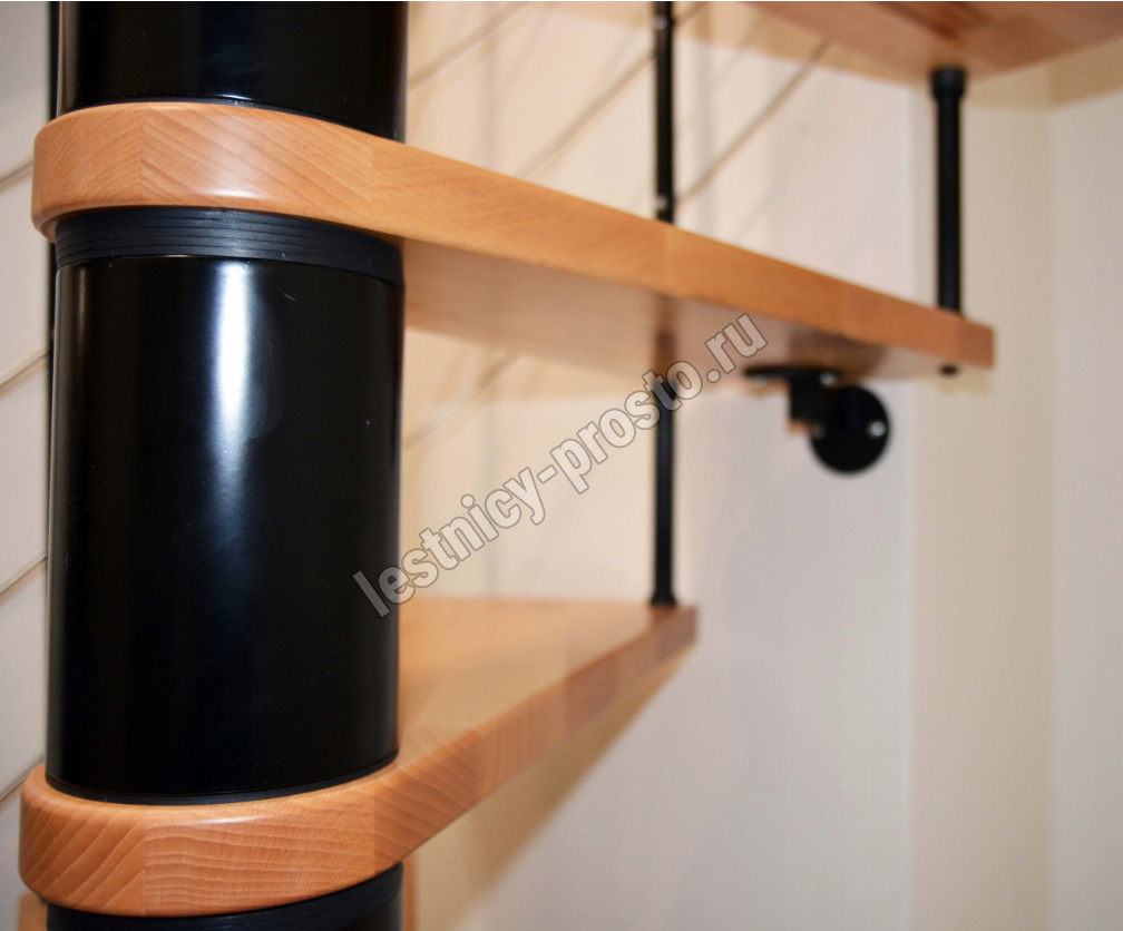 Cтупени и поручень изготовлены из массива бука и покрыты специальным лаком от компании Минка, который предотвращает царапины, сколы или стирание поверхности при интенсивном использовании лестницы. Благодаря возможности регулировать высоту шага с помощью пластиковых вставок (входят в базовый комплект), высоту лестницы можно варьировать в пределах от 2860 до 3090 мм. Кроме того, купив дополнительную секцию для этой лестницы, можно поднять высоту до 3320 мм.